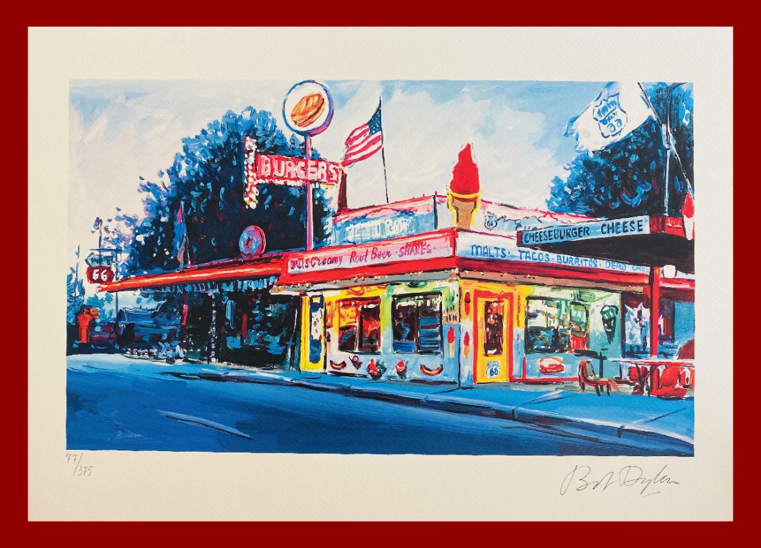Jack Schmitt (CA,IL,20/21C) watercolor paintingApr 12, 2026John Baeder Yankee Clipper Hand Signed ScreenprintFeb 24, 2026John Baeder Lisi’s Pittsfield Diner Hand Signed ScreenprintFeb 24, 2026Michelle Michael "In 'N' Out" Signed (24 x 24)Feb 14, 2026Jack Schmitt (CA,IL,20/21C) watercolor paintingApr 12, 2026Bob Dylan (b.1941) Bandera Texas (2016)7 days LeftBob Dylan (b.1941) Classic Car Show, Cleveland, OH, from The Beaten Path Series (2016)7 days LeftBob Dylan (b.1941) Holbrook, Arizona, from The Beaten Path7 days LeftBob Dylan (b.1941) Midnight Caller, from The Beaten Path (2015)7 days LeftJohn Baeder - Buddy's Truckstop1 day LeftDave Barnhouse - "Sunday Strip"Feb 28, 2026Bob Dylan (b.1941) Backyard, from The Drawn Blank Series7 days LeftBob Dylan, "Horse" Framed Limited Edition, Numbered PP 1/2 and Hand Signed with Letter of1 day LeftBob Dylan, "Bicycle (Magenta)" Framed Limited Edition, Numbered PP 1/2 and Hand Signed with Letter6 days LeftDiner Wall Art – Contemporary Realistic Canvas ReproductionFeb 11, 2026Bob Dylan, "Bragg Apartment, NYC" Framed Limited Edition, Numbered PP 1/2 and Hand Signed with4 days Left
