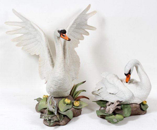 BOEHM PORCELAIN MUTE SWANS, TWO,