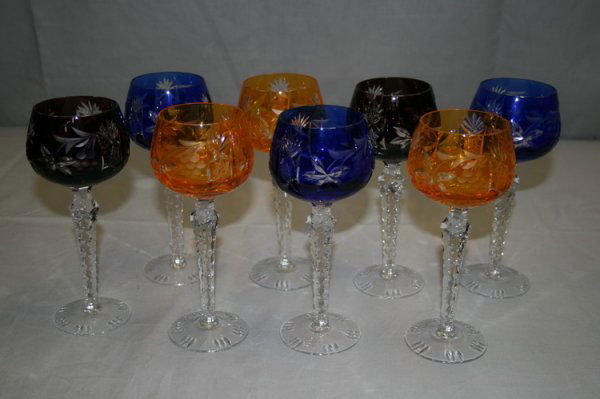 Set of 6 Bohemian Floral Multicolor Cut to Clear Crystal Wine Goblets c1910Bidhaus4.2(840)$5804 days Left