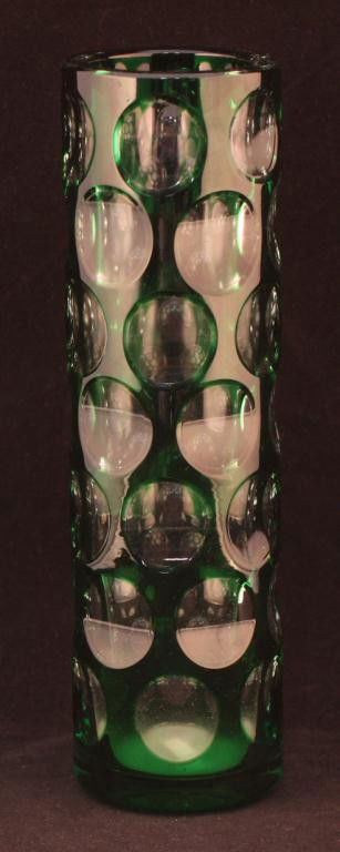 Bohemian Emerald Crystal Thumbprint Vase