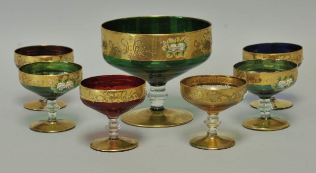 Set of Six Venetian Murano Style Emerald Green & Gilt Enamel Stem GobletsBlue Rose Estate Sales$2501 day Left
