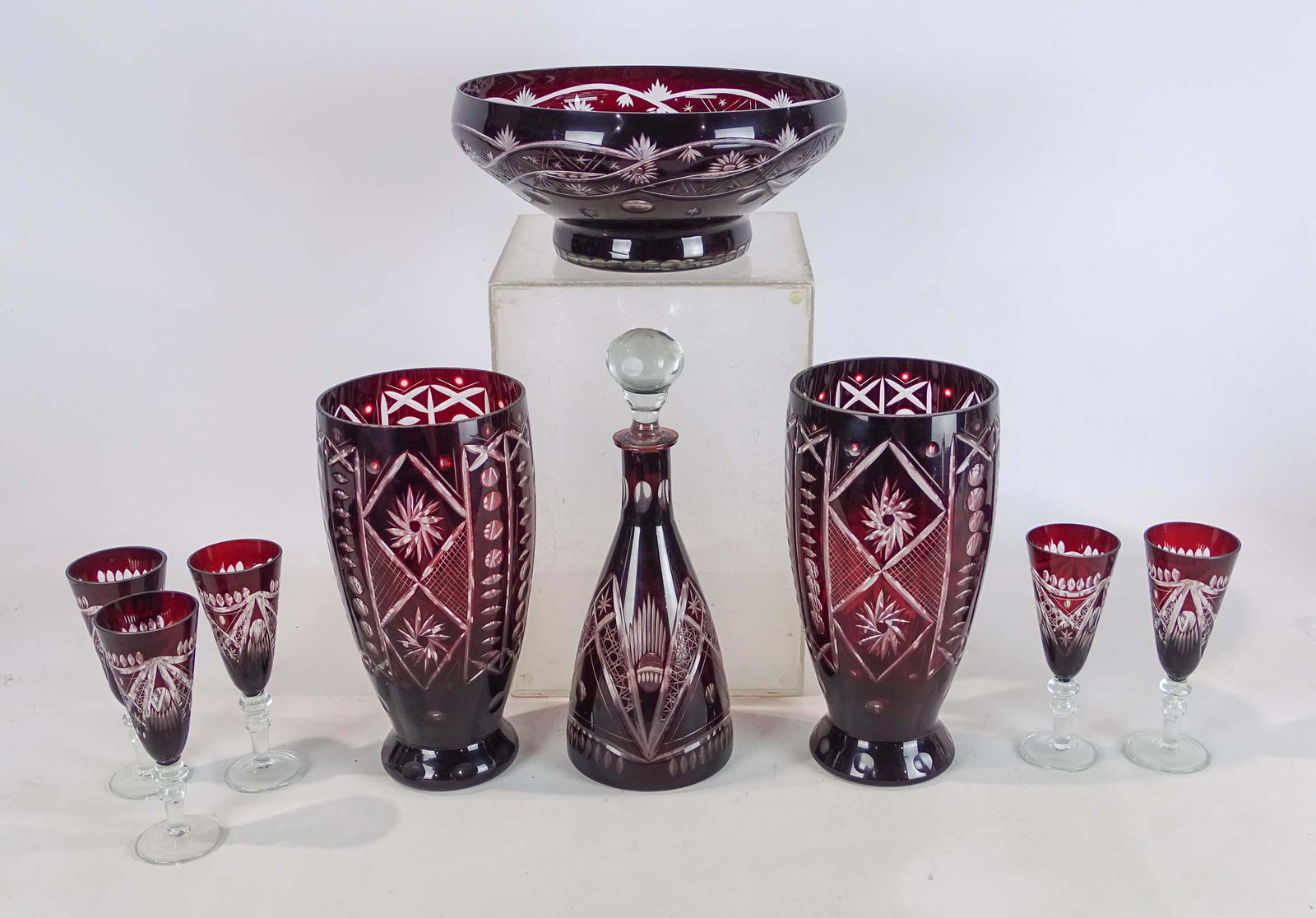 Bohemian Ruby Red Cut to Clear Decanter and Cordials (6)Premier Auction Galleries4.4(364)$10(1 bid)Mar 28, 2026