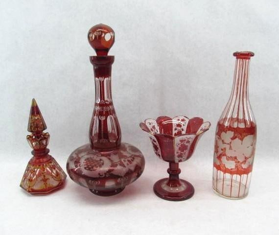 Blue, Amber & Pink Clear Crystal Decanters 4pc LOT6 days LeftBohemian Czech Crystal Cut to Clear Decanters LOTFeb 11, 2026Multi Colored & Other Glass Vases 4pc LOT6 days LeftLot of 5 Ruby Red Glass Articles2 days LeftLot Of 4 Fenton Carnival Glass PiecesFeb 16, 2026Lot of 3 Bohemian glass pitcher and 2 cups4 days Left3 PIECES BOHEMIAN GLASS, 7" AND SMALLERFeb 08, 2026Bohemian Ergmann Ruby Cut To Clear Decanter SetFeb 08, 2026A Collection of Six Vintage Ruby Red Flashed and Cased Crystal Items, Including Lenox CrimsonFeb 15, 2026A Group of Decorative Glassware Pieces1 day LeftFour Bohemian Overlay Glass Vases and a Luster6 days LeftBohemian Glass Lidded Jar10 hrs LeftEgermann Bohemian Ruby Red Cut To Clear Glass Decanter and Wine GobletsMar 01, 2026(6) SILVER OVERLAY PERFUME BOTTLESFeb 20, 2026VINTAGE ART GLASS VASESFeb 12, 2026Ruby Red Cut to Clear Glass Assembled Service, 8Mar 12, 2026