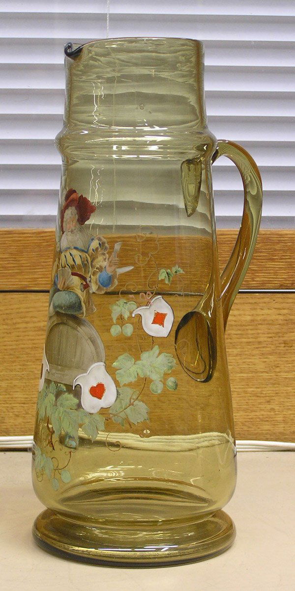 Bohemian hand decorated amber pitcher