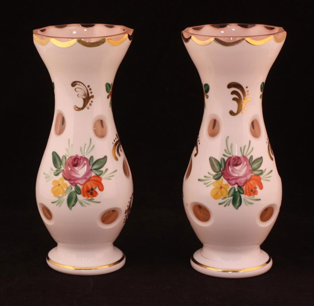 Bohemian Pink Overlay Fluted Vases