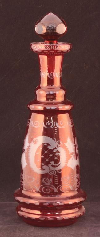 Bohemian Ruby Cut-to-Clear Glass Decanter with Stopper