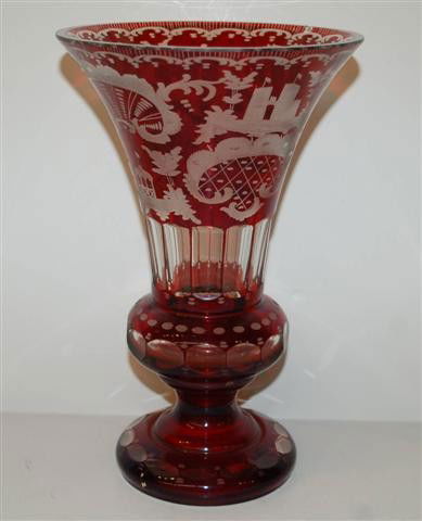 Bohemian Ruby Red Cut to Clear Glass Vase