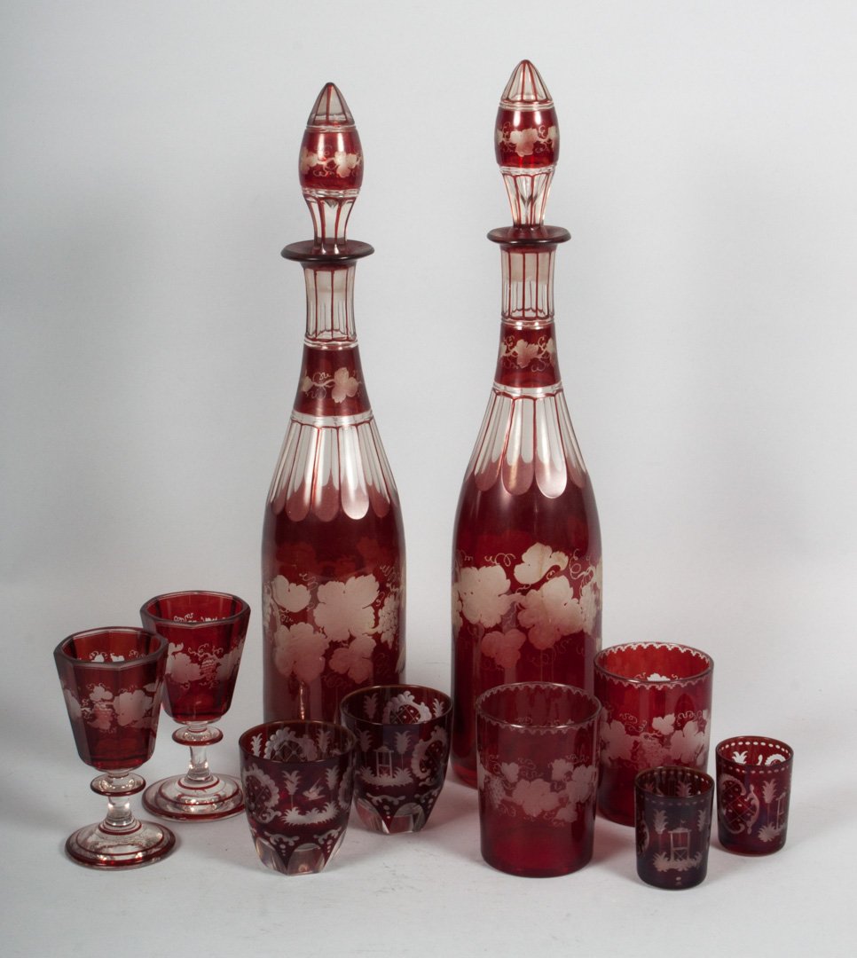 8 pc Lot Victorian Art Glass Perfumes7 hrs Left13 pc Lot Collectible Glass Heisey & More7 hrs Left7 pc Lot Baccarat Rose Tiente French Art Glass7 hrs Left7 pc Lot Victorian Mother of Pearl Satin Art Glass7 hrs Left4 pc Lot Ruby Stained Tarentum Ladder & Diamonds Cruet Shakers, Toothpick Holder7 hrs LeftLot of 5 Vintage France Made Cordial Glasses & Liquor Decanter Set w/Stopper15 hrs Left2 pc Lot Steuben Art Glass Vases7 hrs LeftLot of European Perfume/Scent Bottles and American Pressed Glass TumblersMar 21, 2026SIX ANTIQUE CUT GLASS & CRYSTAL SCENT BOTTLES, ETC6 days LeftBohemian Ruby Red Cut to Clear Decanter and Cordials (6)Mar 28, 2026Egermann Bohemian Ruby Red Cut To Clear Glass Decanter and Wine Goblets10 hrs LeftBohemian Cranberry Cut to Clear Crystal Decanter Set (4)Mar 28, 2026Ruby Red Cut to Clear Glass Assembled Service, 8Mar 12, 2026(5) Piece Bohemian Cut to Clear Crystal Decanter Cordial SetMar 15, 2026Ruby Red Cut to Clear Bohemian Stemware (12)Mar 28, 2026COLLECTION OF EARLY GLASS INC. PR OF RINSERS, FLIP GLASS, TUMBLERS, 2 DECANTERS- 18 WINE ORMar 15, 2026