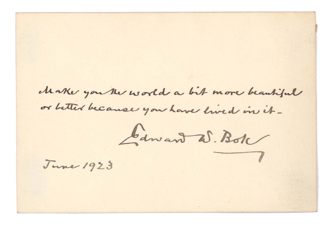 Bok, Edward Signed Card