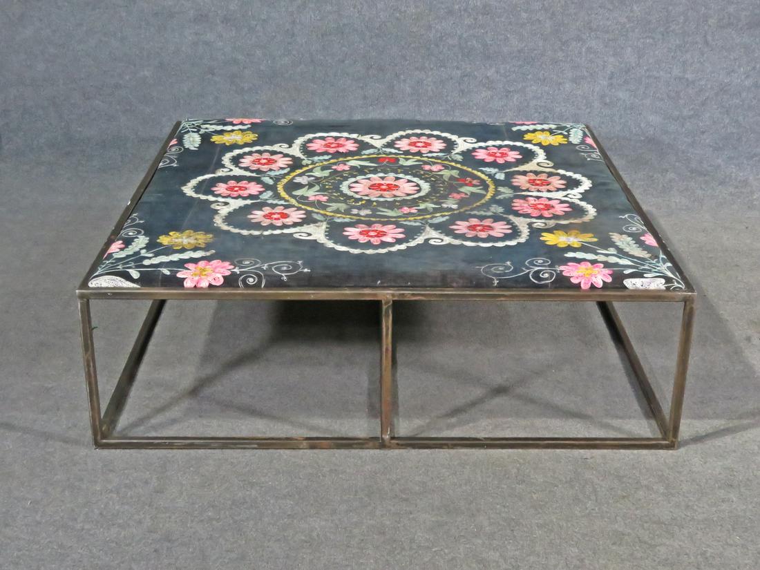 Baker reverse painted glass top coffee table