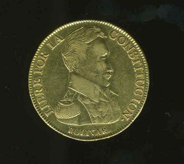 Sold1834 Chilean 8 Escudos Gold Coin = 0.85 Troy Oz.1834 Chilean 8 Escudos gold coin. Excellent condition. Weight =17 dwt. or 0.85 troy oz.; gold content 0.875 pure.See Sold Price