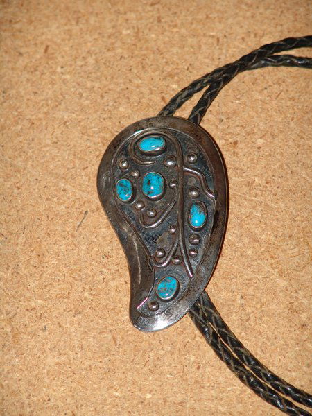 OLD STERLING NAVAJO TURQUOISE BOLO TIE NECKLACE