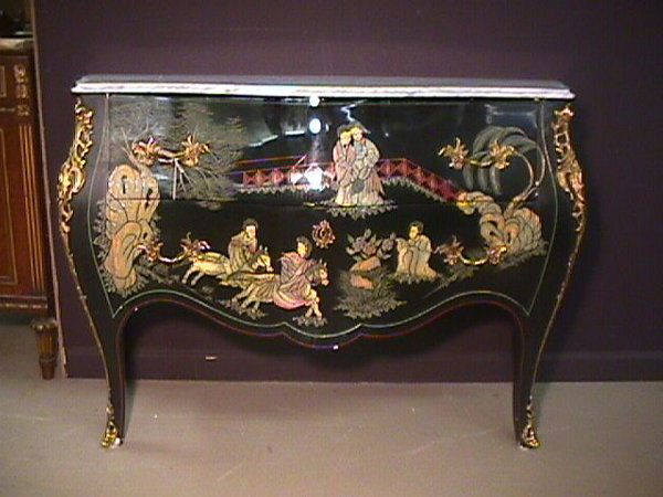 BOMBE MARBLE TOP COMMODE ORIENTAL DESIGN