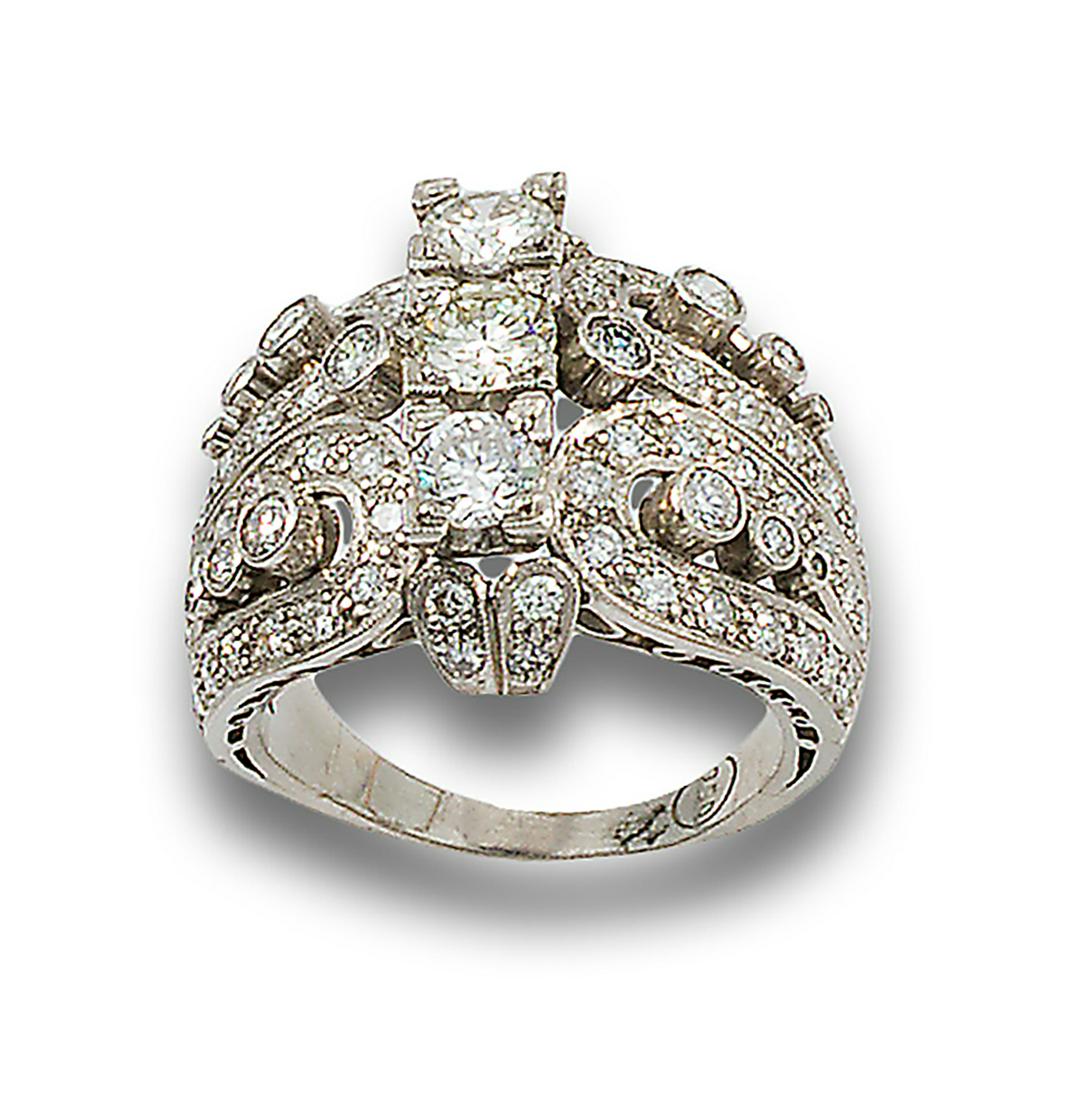BOMBÉ RING, OLD STYLE, DIAMONDS AND PLATINUM