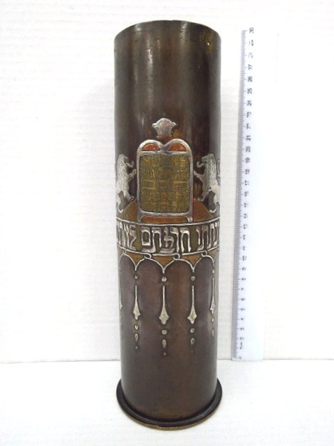 Bombshell, inlaid with silver and copper, Bezalel work,