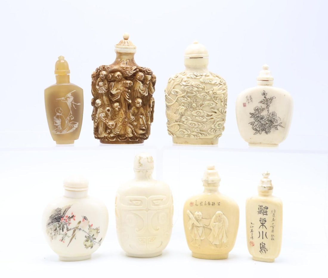 lot of 7 assorted Chinese snuff bottles1 day Left(2) CHINESE SNUFF BOTTLES INCL. CARVED TOBACCO QUARTZFeb 21, 2026Group of Six Asian Style Carved Miniature Snuff BottlesFeb 12, 2026Collection Of Chinese Snuff BottlesFeb 13, 2026A Group of Six Enameled Snuff Bottles, China, (6)A Group of Six Enameled Figural Snuff Bottle, China, (6)Snuff bottles6 days LeftThree Snuff Bottles, China, (3)Chinese Inside Painted Glass Snuff Bottles, 4Feb 12, 2026Six Glass Snuff Bottles, China, (6)Group (6) Chinese Peking glass snuff bottlesFeb 19, 2026A Group of Three Carved Hardstone Snuff Bottles, China, (3)Six Porcelain Snuff Bottles, China, (6)A Group of Eight Chinese Snuff Bottles3 days LeftSeven Agate Snuff Bottles, China, (6)Group of Ten Assorted Asian Style Miniature Snuff BottlesFeb 12, 2026