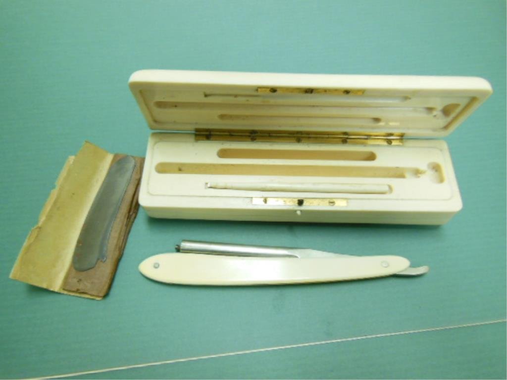 Antique George Wostenholm IXL Straight Razor with Aged Box6 days LeftRare Nude Art Nouveau Celluloid Straight Razor by Ern. C. FriedrMay 01, 2026Oxford RazorOxford RazorEnamelware, Brownie Camera, Victory Glass & MoreMay 02, 2026Art Nouveau nude female straight razor8 hrs LeftShumate Razor CoOxford Razor, Naked lady on handleunreadable Razor, busted handle, wrong boxStar Wars Mandalorian razor crest plastic model kit2 days Left2001 Case - Russlock with jigged natural bone, unused in original boxEnglish Sterling Silver and Bone Fish Serving Set with Case6 days LeftChrome Hearts Tiny Razor Blade Necklace Ag925 Silver Authentic 40.9in2 days LeftVintage Rolls Razor SharpenerApr 23, 2026EDWARDS FAMILY GENEALOGY LOTApr 19, 20261989 Case - NKCA Jumbo Sleeve board, full etch, bone handles, unused in box