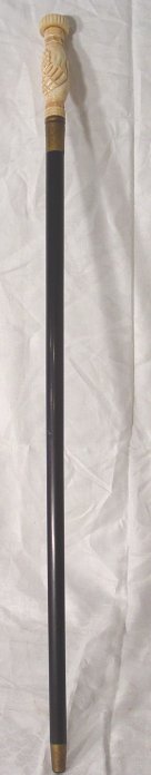 SoldCarved Ivory and Silver Top CaneIvory "L" with silver highlights topped cane. Silver marked "Sterling" Ivory exhibits some cracking and cane presents some wear and scuffing to shaft. Cane measures 36" and prSee Sold Price