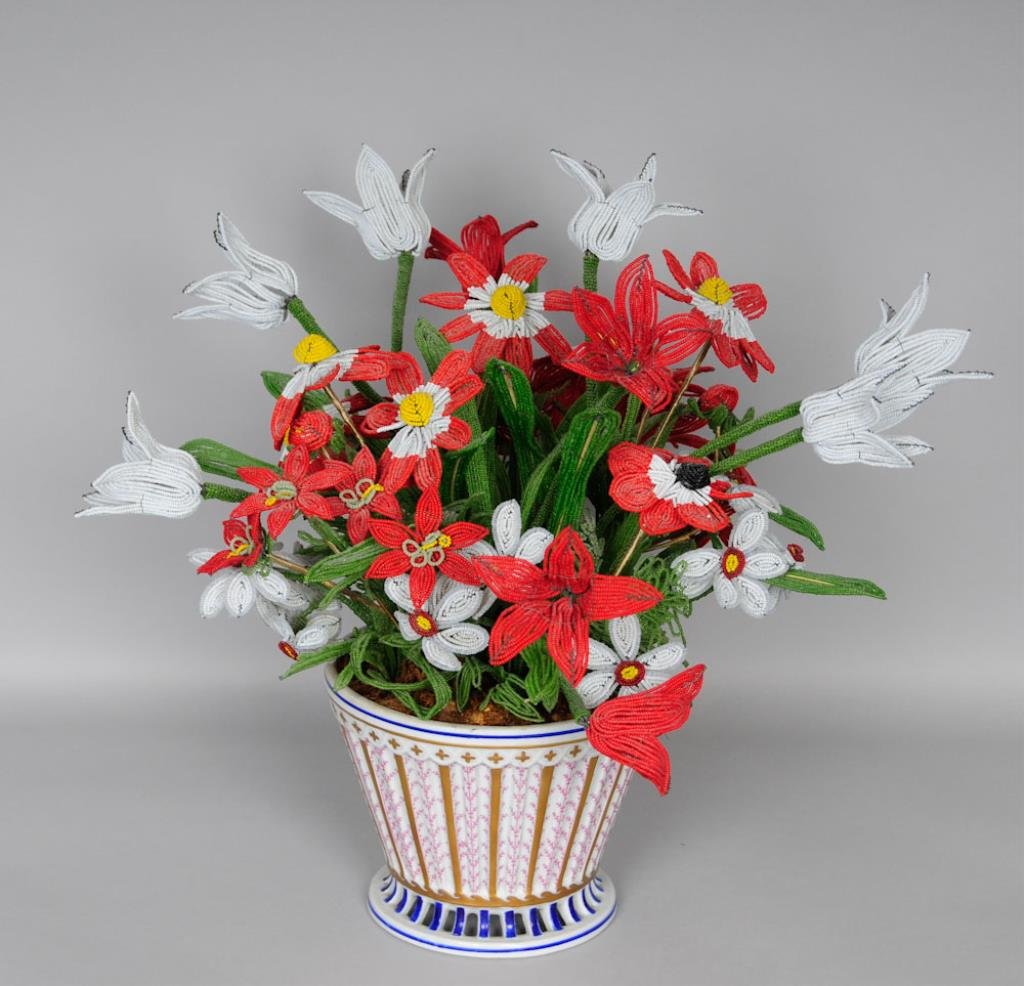 Bonwit Teller, Cachepot w/ Beaded Flowers
