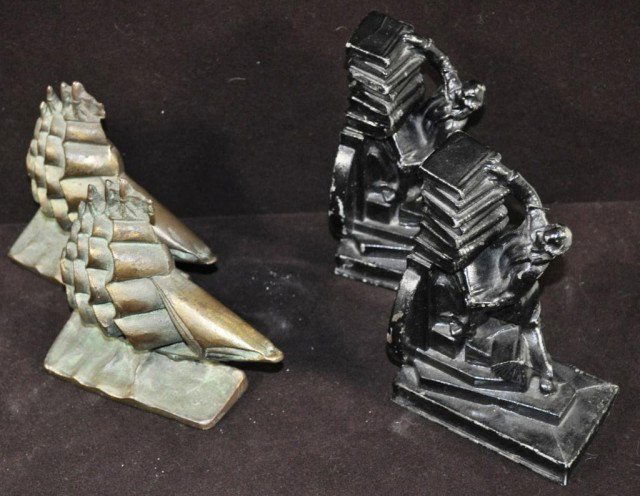 A composed lot of two Austrian cold painted bronze figurine groupsFeb 24, 2026Lot of 3 Heavy Vintage Sailing Ships Bookends/DoorstopsVintage Brass Candlestick & Candle Holders3 days LeftCast Iron (2) Door Stops #68 [Sailing Ships]Feb 25, 2026Owl on Book Bird Cast Iron Bookends5 days LeftRookwood "Sailing Ship" bookends, 1941.Feb 25, 2026Pair of Heavy Wood Book Ends6 days LeftWWII Army Air Corps B-26 Marauder Bomber Aircraft Metal BookendsMar 07, 2026Three Set of Figure Art Deco Bookends (3)Mar 07, 2026A Pair of Antique Floral Motif BookendsFeb 25, 2026Crouching Lion 1930 Pair BookendsFeb 25, 2026Rookwood Rook bookends in black high glazeFeb 25, 2026Billy Bowen Patina Brass Bookends, "Copyright 1928 Cape Cod Fisherman"Feb 28, 2026Pair of Brass Dolphin Bookends2 days LeftUnique Pair Syroco Wood Composition Bookends6 days LeftPair of Abraham Lincoln Book Ends 6 1/2" Tall and very heavy.Feb 28, 2026