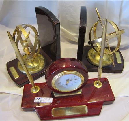 Bookends and clock and pen set