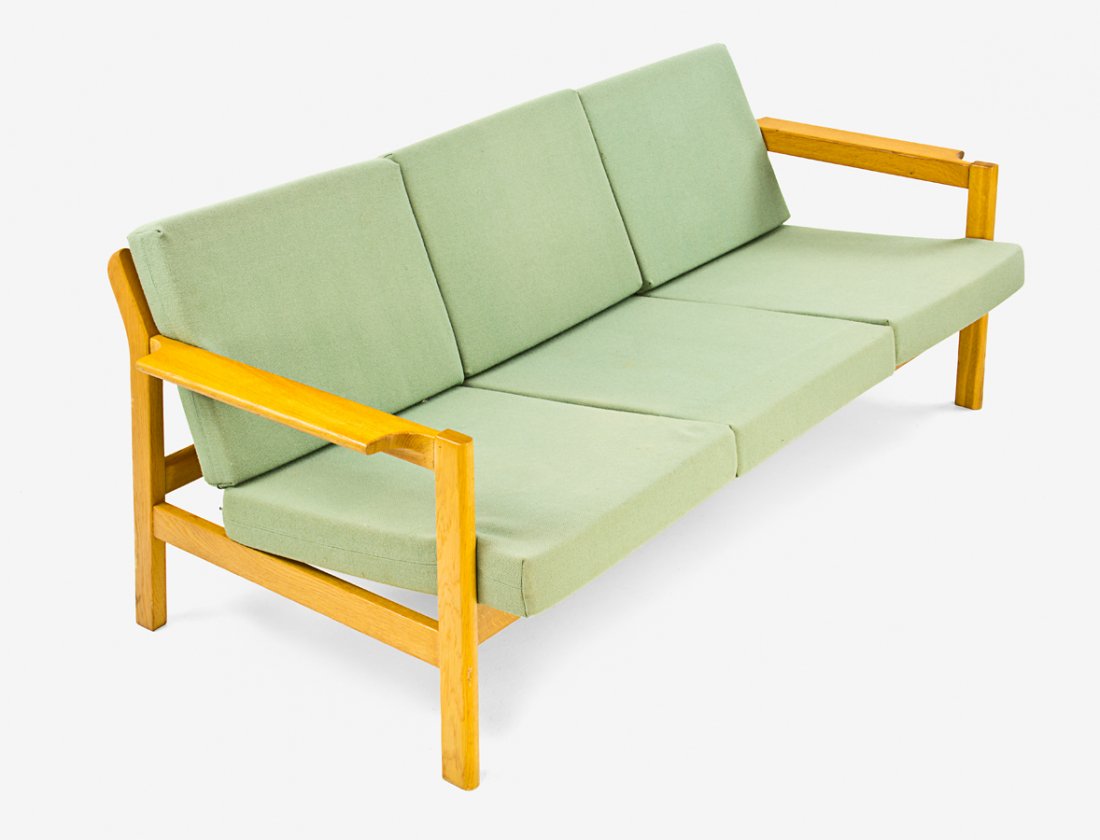 Danish Mid-Century Solid Oak Three-Seat Sofa #1