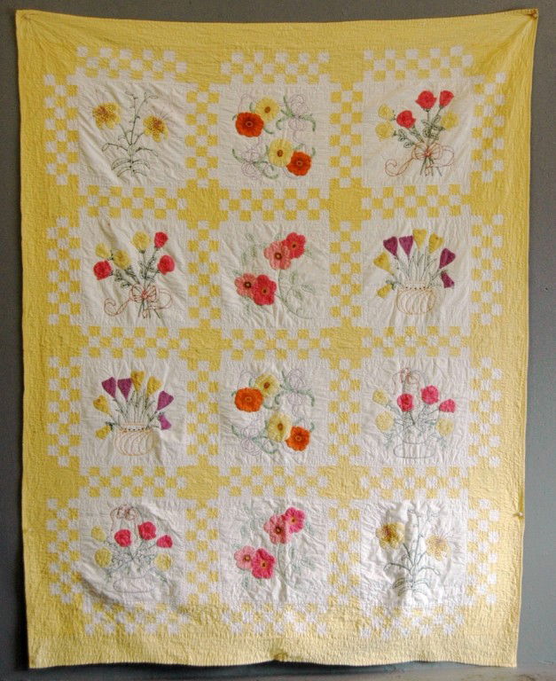 Rare 1920's Marie Webster Sunflower Applique Quilt5 days Left30's Hourglass Quilt Top6 days Left40's "Flower Pot" Pieced Quilt Top5 days LeftPatch Work Quilt With Random Vintage FabricFlower Garden Applique Cotton Quilt, Mid to Late 20th C.Feb 24, 20261925 Grandma's Flower Garden quilt w/ scalloped border in pastel colors. Has 56 blocks. 80"L x 72"WFeb 24, 2026Early 1900s Grandma's Flower Garden Quilt full scalloped double green border 92"L x 78"WFeb 24, 2026AMERICAN APPLIQUE SUNFLOWER QUILT.4 days LeftHand Stitched Floral Applique Quilt w/ Scalloped EdgesMar 16, 2026Patchwork QuiltFeb 22, 2026Bedspread size 96"L x 82"W bird pattern quilt, has 56 blocks, checkerboard quilting pattern w/Feb 24, 2026Hand Stitched Multi Textile Patchwork QuiltMar 02, 2026Yellow and White Signature or Names Quilt , Butlerville, IN LUBA Methodist Church, 1933, 82"X62"Feb 24, 2026Hand Stitched Feed Sack Grandmothers Flower Garden QuiltMar 16, 2026Gentleman's Fancy quilt in yellow calico background 72" x 87" Very nice conditionFeb 24, 2026Geometric Abstract Squares Country QuiltMar 01, 2026