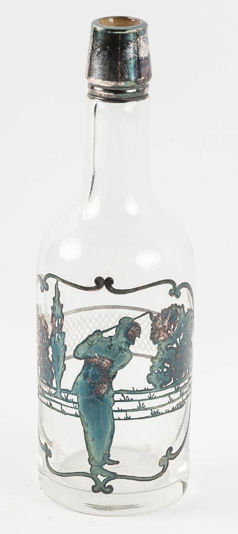 Bottle with silver golfing overlay