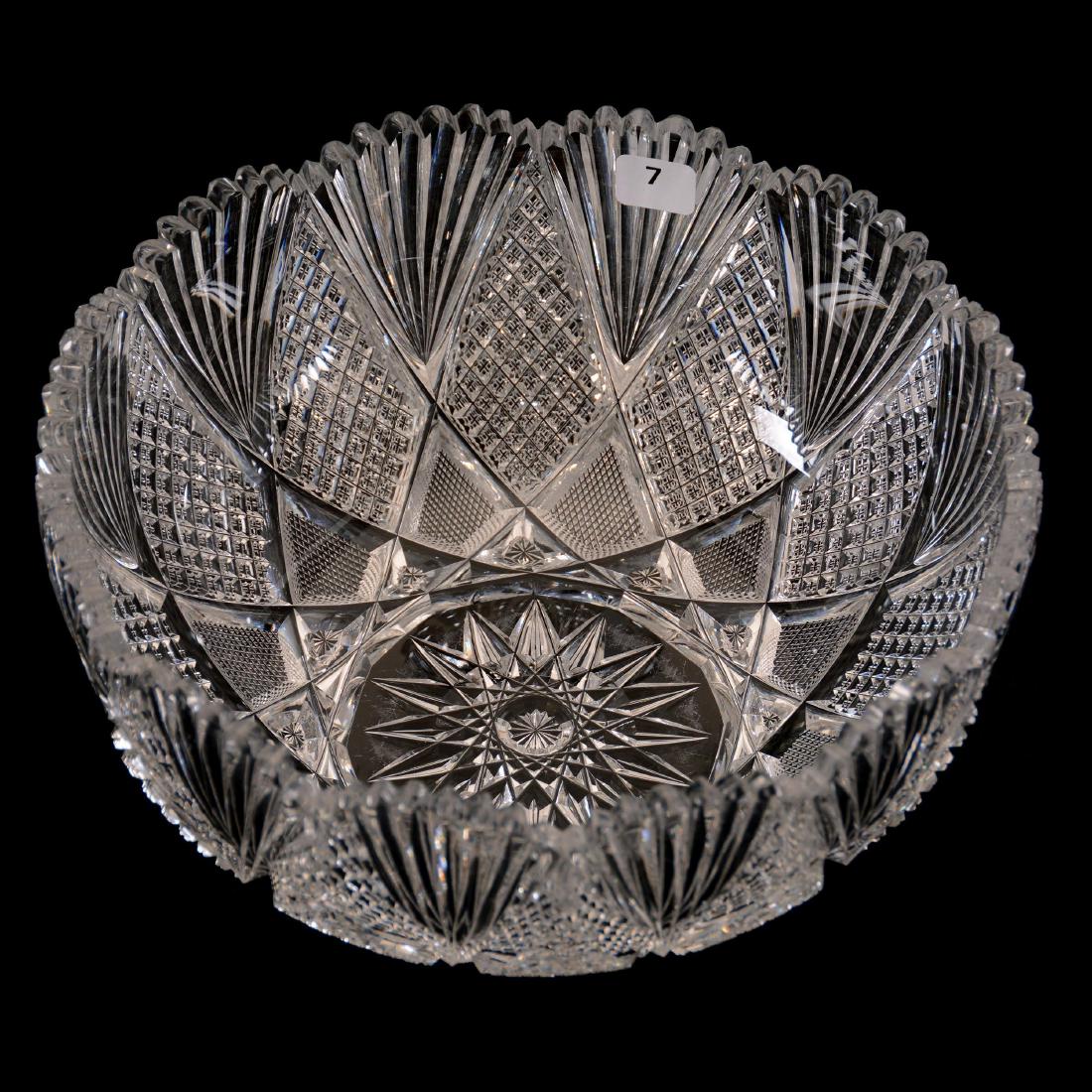 SoldTWO-PART PUNCH BOWL - 10.5" X 12" - ABCGTWO-PART PUNCH BOWL - 10.5" X 12" - ABCG - SIGNED EGGINTON - CRESWICK PATTERN - EXTRA CLEAR BLANKSee Sold Price