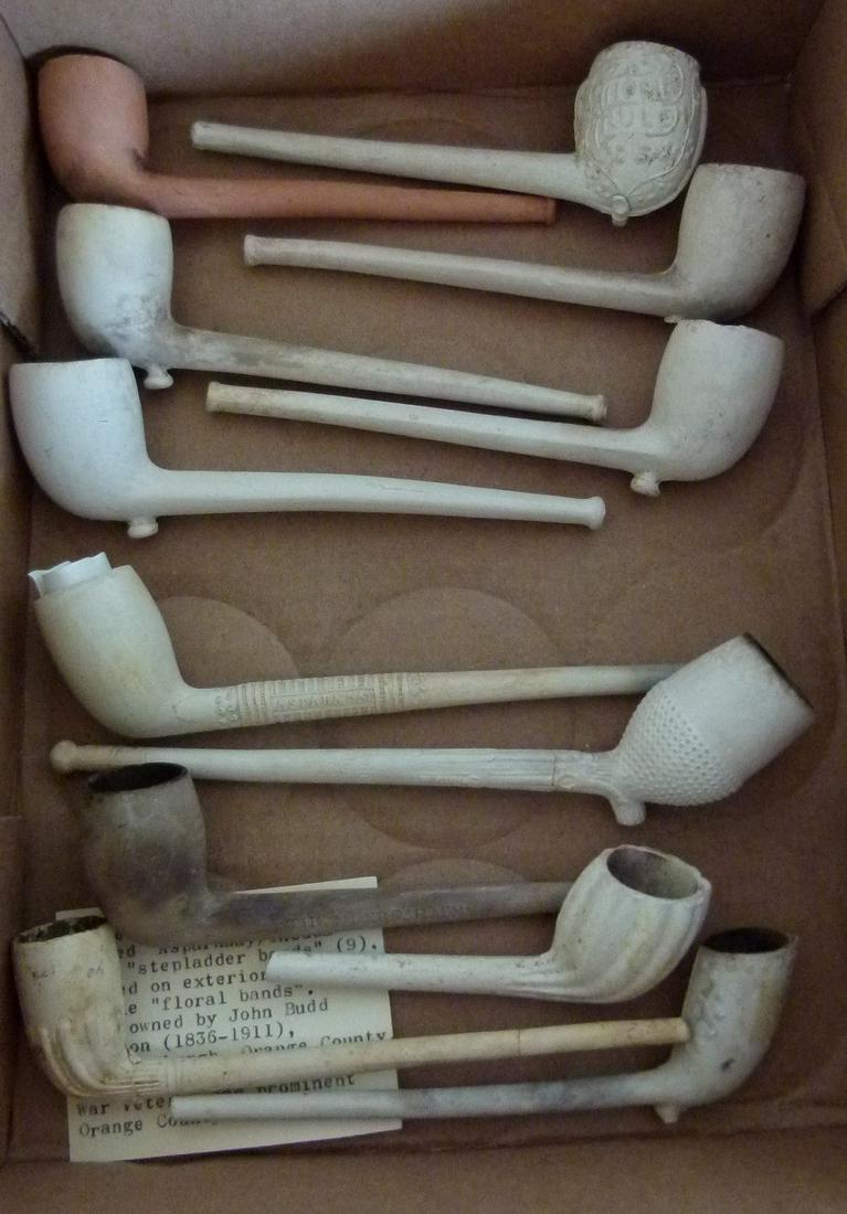 BOX LOT CLAY PIPES, 18/19TH C.