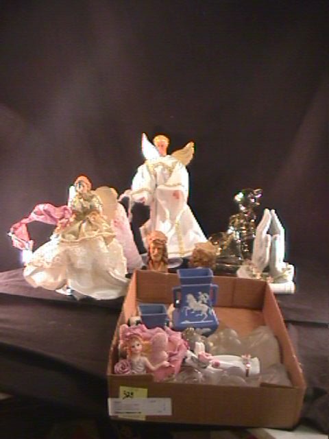 BOX LOT COLLECTIBLE FIGURES ANGELS FRAMES CANDLES
