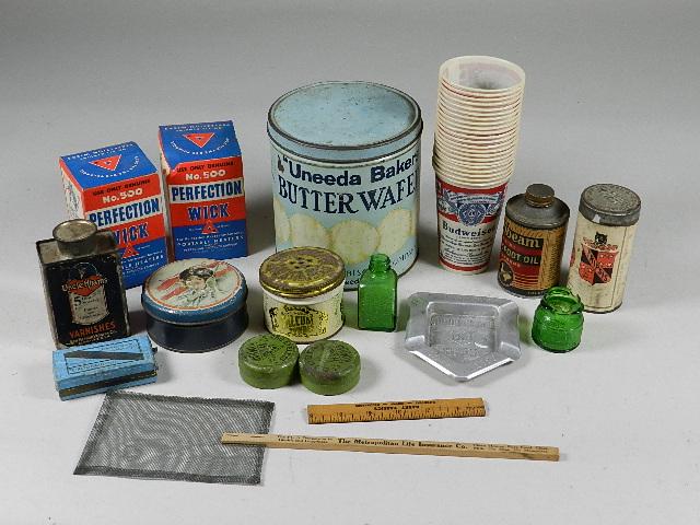 Early Medicinal Advertising Lot Inc. Cobalt Seltzer Bottle, Tums, Noxacorn, Flents and More7 days LeftASSORTED ADVERTISING AND DOMESTIC ARTICLES, LOT OF 14Mar 05, 2026Lot 5 Antique Gun Powder Advertising Tins EtcMar 07, 2026ASSORTED ADVERTISING TOBACCO AND CIGARETTE TINS, LOT OF 22Mar 05, 2026Vintage and Antique Assortment Lot Featuring Art Fabric Mills DollASSORTED AMERICAN AND ENGLISH TOBACCO / CIGARETTE TINS, LOT OF 16Mar 05, 2026Primitive Lot Inc. Advertising Tins, Egg Scale and Tin Lunch Pail7 days LeftEarly Automotive Lot of Tins, NOS Belt and Accessory Book with Assorted Tins7 days LeftTobacco Advertising Tin Lot Inc. Prince Albert, Tuxedo, Rex, Cinco, Oceanic and More7 days LeftLOT OF PRIMERS TINS3 days LeftLOT OF ASSORTED VINTAGE TINS3 days LeftLOT OF VINTAGE ADVERTISING TINS3 days LeftLOT OF TOOTH POWER TINS3 days LeftAssorted Vintage Boxes5 days LeftAn Assortment of Vintage Advertising Tins, Kitchenware, and Household Collectibles including a Camel3 days LeftGroup of 9 Household & Auto Related Advertising Tins6 days Left