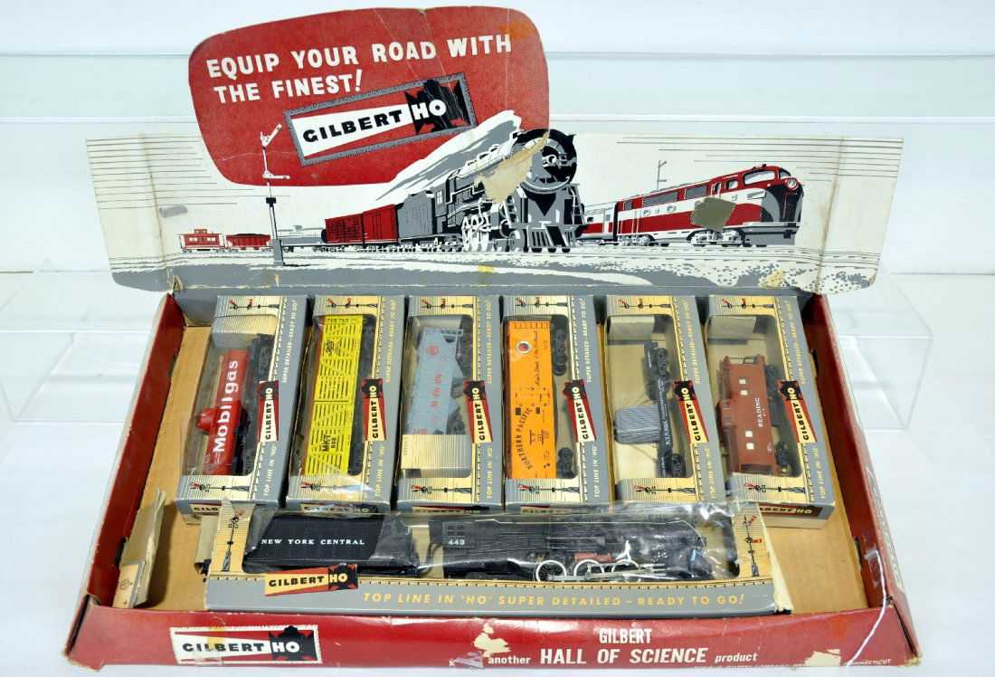 SoldGilbert American Flyer HO Set #30720 in original boxGilbert American Flyer HO Set #30720 in original box Missing track and transformer. Including 31004 prr engine. 33558 multi purpose flat car. 3318 hay ejector car. 33820 tie ejector. 33215 Peabody hopSee Sold Price