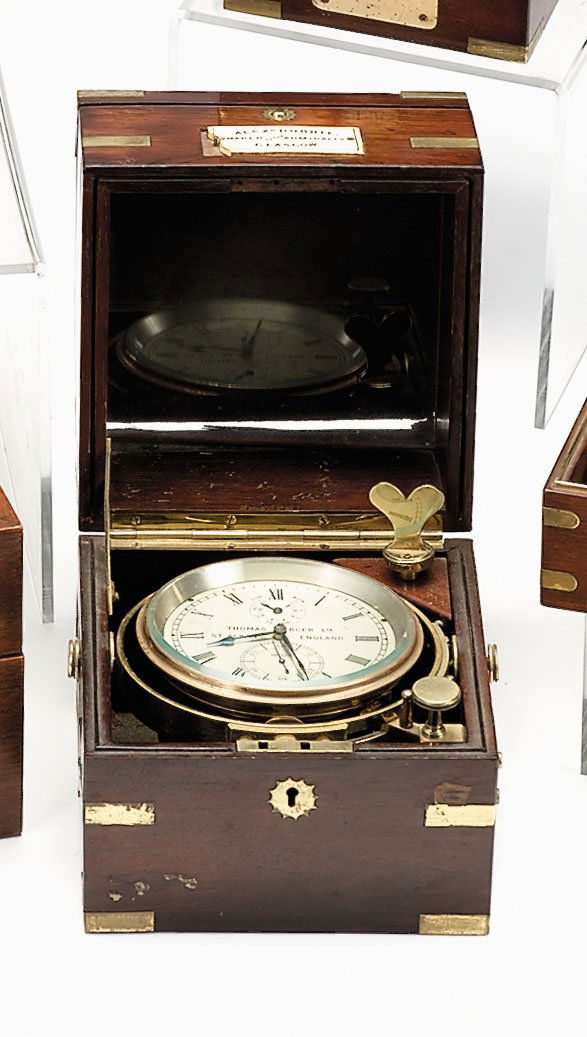 Lot of 2 Wall Clocks - Octagonal & Ornate Pendulum3 days Left800 Silver Pocket Watch Collection Avance Retard Guilloche Niello etcFeb 22, 2026Arnold, London. A gilt brass manual wind open face marine chronometer in a mahogany box Arnold, ...A Tiffany & Co. Swiss Brass Mounted Mahogany Cased Desk Timepiece7 days LeftSETH THOMAS SHIP'S CLOCK AND BAROMETER SET America, 20th Century Bezel diameters 5.25". Board 9.5" xFeb 26, 2026MORRIS TOBIAS, LONDON MARINE CHRONOMETER IN CASEFeb 21, 2026South Bend Watch Co. Gold Filled Case Pocket Watches With Ornate Storage BoxFeb 15, 2026George II Style German Mahogany Mantle Clock4 days LeftA mahogany break arch table clock with verge escapement Perigal, LondonA late 19th century mahogany cased two day marine chronometer Robert Gardner, 20 Lloyd Sq Londo...Antique Mahogany Mantel Clock with Reverse Painted Glass Panel by Bordman & WellsFeb 16, 2026Atmos LeCoultre Clock5 days LeftMARINE COMPASS CO. GIMBALED COMPASSFeb 21, 2026Vintage Wood Freeman Metal Marine Pilot, Autopilot Compass on a Gimbal, 9h x 9w x 9d inchesIthaca Calendar Clock Co. Calendar Clock4 days LeftD. Baker Melrose, MA Gimbaled Brass Ships CompassFeb 13, 2026