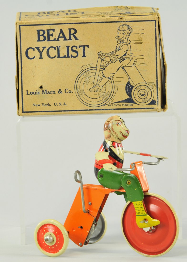LOT OF BEAR & MONKEY TOYS1 day LeftBOXED LINEMAR OLIVE OYL ON TRICYCLEFeb 27, 2026JAPANESE OKABE BOXED CYCLING MARY NO.1Feb 27, 2026Marx Speed Boy Delivery 1930s Near Mint Boxed1 day LeftLINEMAR GOOFY CYCLISTFeb 27, 2026FLERSHEIM LA PEDALETTE W/ REPLICA BOXFeb 27, 2026LINEMAR POPEYE CYCLISTFeb 27, 2026Marx Joy-Rider Tin Windup Boxed1 day LeftLINEMAR DISNEY PLUTO MECHANICAL TRICYCLE TOYFeb 27, 2026Tin Litho Windup Ringing Tricycle With key and Box3 days LeftISSMAYER MAN RIDING TRIKEFeb 27, 2026Marx 1930s Reversible Road Roller Mint Boxed1 day LeftVICTOR BONNET STYLE WOMAN CYCLISTFeb 27, 2026LINEMAR MICKEY MOUSE CYCLISTFeb 27, 2026BOXED MARX MORTIMER SNERD TRICKY AUTOFeb 27, 2026Tin Litho Ringing Tricycle Windup With Key Made in CHINA Shanghai 19503 days Left