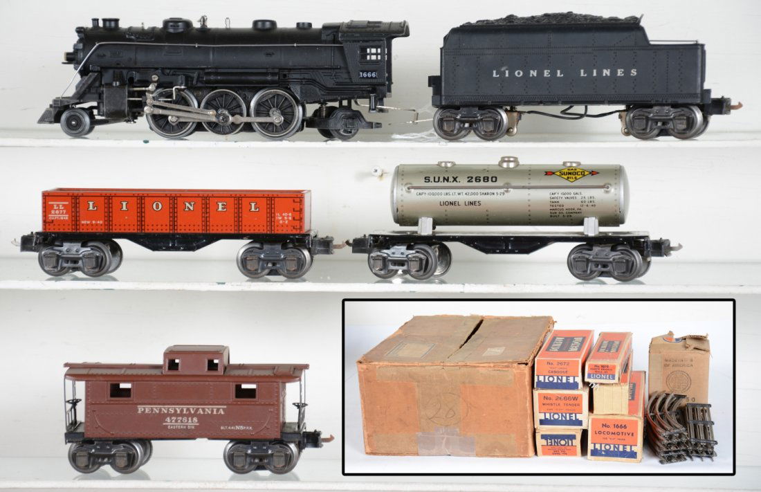 LOT ASSORTED TOY TRAINS, 19/20TH C.7 days LeftLot 9 Lionel O Gauge Train CarsMar 07, 2026Estate Lot of 7 Vintage Lionel Trains - O GaugeMar 15, 2026Lot w/ Lionel Boxed No 3356 Horse Car & CorralMar 07, 20267 BRASS H.O. TRAINS INCL GONDOLA, TANKER, BOX CARS, ETC7 days Left8 BRASS H.O. TRAINS INCL O & W #278 LOCOMOTIVE, TENDER+7 days Left10 BRASS H.O. TRAINS INCL SHAY 20 TON LOCOMOTIVE +7 days Left9pc Lionel Post-War O Gauge Model Train CarsFeb 24, 2026(5) Pre-War Vintage Lionel Standard Gauge Train CarsFeb 22, 20266pc Lionel Postwar O27 Model Railroad Pieces5 days LeftVintage Lionel Trains, Accessories, & parts6pc American Flyer and Lionel O Gauge Toy Train Components5 days LeftLionel Rolling Stock, Accessories & MoreAmerican Flyer Pre-War Train Set- 300 Steam EngineAmerican Flyer Pre-War Train Set with 0-4-2 Engine4pc Lionel O-Gauge Freight Cars5 days Left