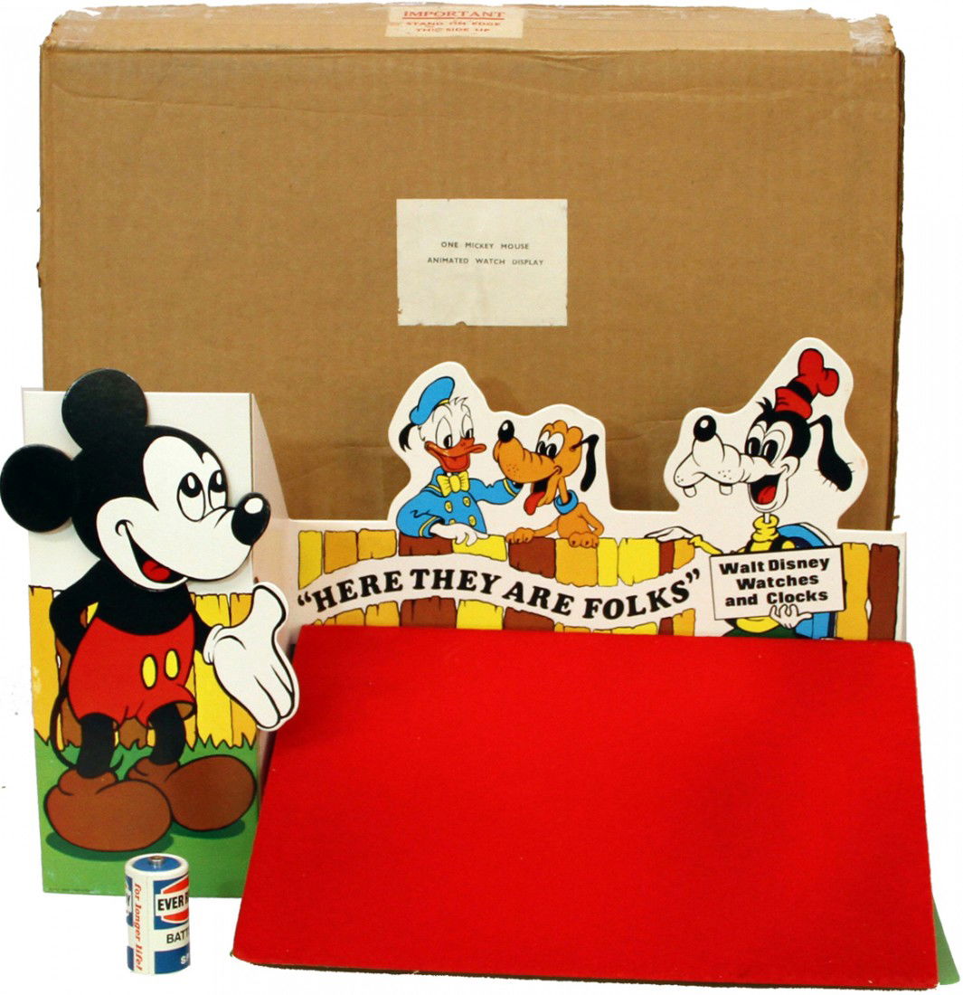 BOXED MECHANICAL DISNEY WATCH AND CLOCK DISPLAY