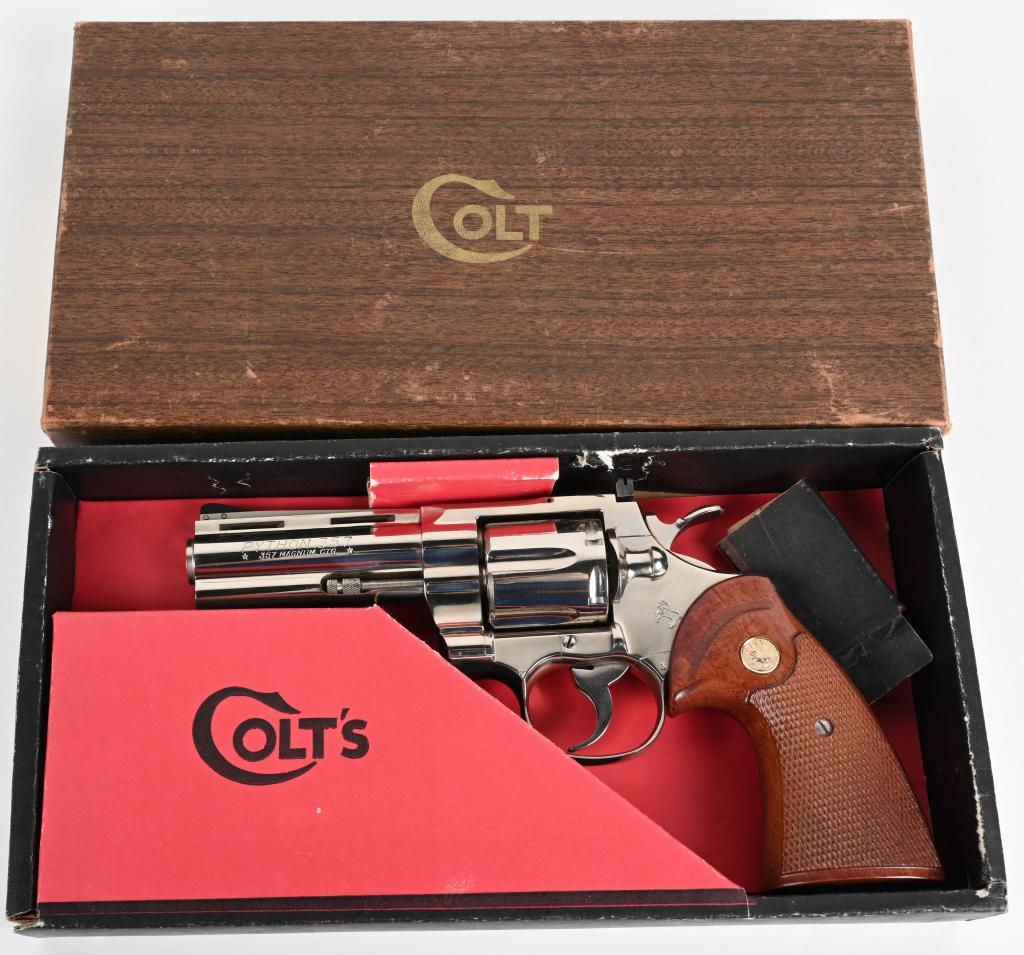 Colt King Cobra Double-Action Revolver, .357 Magnum, 2-Inch Barrel, c. 2018-Present6 hrs Left*Colt Peacemaker .22 Revolver in BoxFINE NICKEL PLATED COLT POLICE POSITIVE DOUBLE6 days LeftTRADITIONS REMINGTON 1858 PERCUSSION REVOLVER5 hrs LeftCASED COLT MODEL "7" 1855 ROOT REVOLVER.Mar 01, 2026*Colt MK IV Series 80 Government Model with Bo-Mar Sights in BoxSmith & Wesson Model 29-2 .44 Magnum North Carolina State Highway Patrol 50th Anniversary Revolver6 days Left**Smith & Wesson Model .32 Hand Ejector "Pre-Model .30" Snubnose RevolverSECOND GENERATION COLT SINGLE ACTION ARMY REVOLVERFeb 28, 2026(C) SMITH & WESSON MODEL 19-3 TEXAS COMMEMORATIVE DOUBLE ACTION REVOLVERMar 03, 2026**Colt Fourth Model Derringer with Factory BoxSTAINLESS STEEL COLT PYTHON DOUBLE ACTION REVOLVER6 days Left1ST YEAR COLT SECOND GEN SAA REVOLVER WITHFeb 28, 2026H&R Automatic .32 S&W Spl DA RevolverMar 15, 2026Smith & Wesson Model 642-2 Airweight .38 Special +P Revolver, Circa 2000s1 day LeftCOLT 3RD GEN FACTORY "A" ENGRAVED LIMITED EDITIONFeb 28, 2026