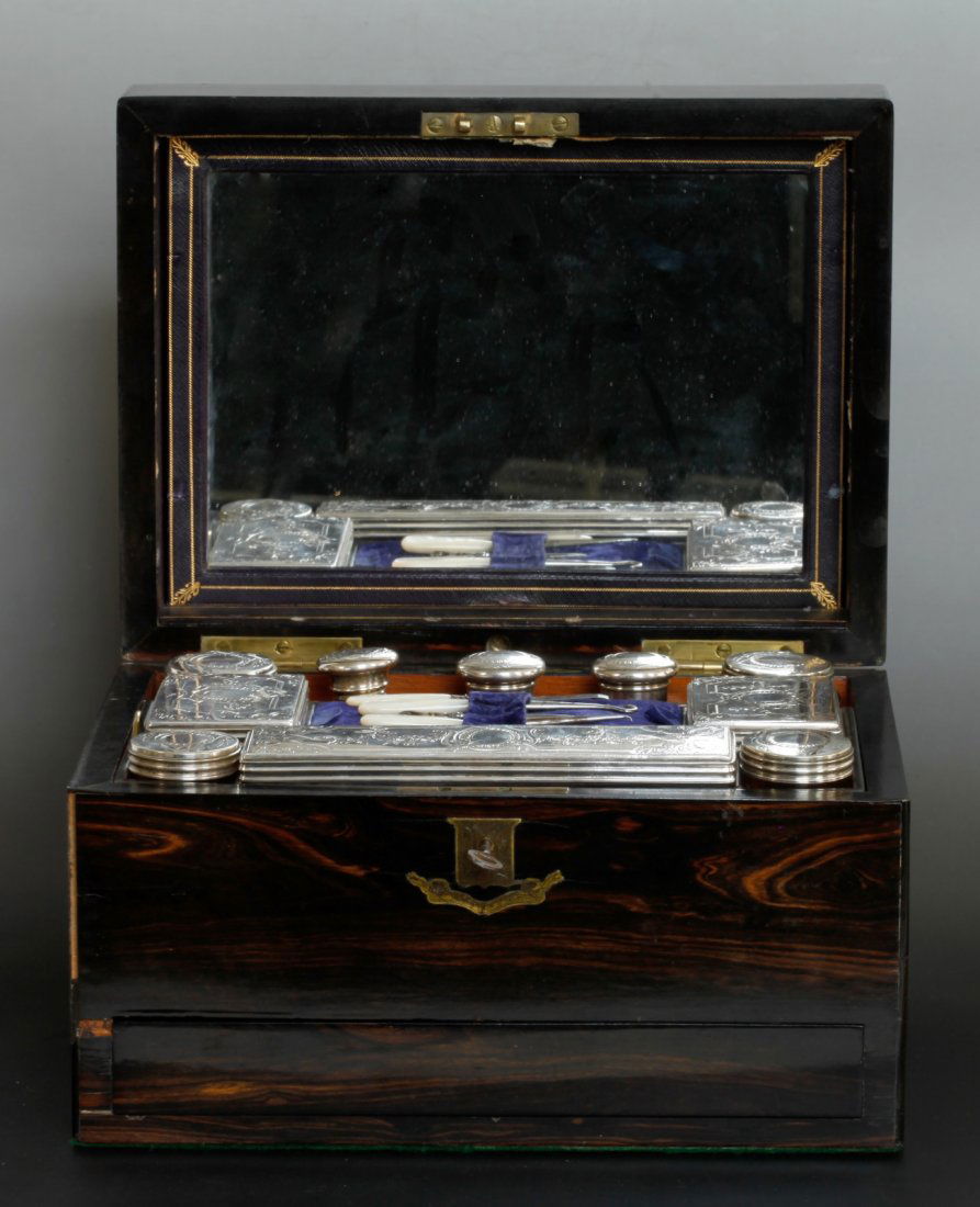 AN ENGLISH SILVER & CRYSTAL TRAVELING TOILETRY SET, 1914Feb 15, 2026Antique etui box / case / chest with mother of pearl sewing notions in custom fitted compartments,Feb 21, 2026A Vintage Box and ContentsFeb 15, 2026A HUANGHUALI WOOD HAND-CARRIED BOX WITH HUNDRED TREASURES INLAY AND DRAGON CARVINGFeb 21, 2026ANTIQUE CHINESE TRAVELING BRIDE'S BOX, - H: 8 1/4 in. D: 15 3/4 in. W: 11 1/2 in.4 days LeftA ZITAN WOOD HAND-CARRIED BOX WITH HUNDRED TREASURES INLAYFeb 21, 2026A HUANGHUALI WOOD HAND-CARRIED COVERED BOX931 Lots AwayA HUANGHUALI RECTANGULAR LIDDED BOXFeb 26, 2026Amber food boxMar 06, 2026A HUANGHUALI CARRIED-HANDLE BOXFeb 21, 2026A box of top-quality colored diamonds and gemstones10 hrs LeftCONTEMPORARY CASKET MUSIC BOX, C. 1950/60Feb 21, 2026A HUANGHUALI WOOD COVERED BOX1103 Lots AwayANTIQUE EUROPEAN WOODEN MUSIC BOXFeb 21, 2026Chinese Enamel Jewelry Box5 days LeftA ZITAN WOOD BOXFeb 21, 2026