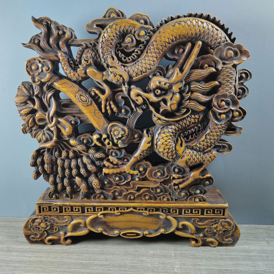 Boxwood openwork carved screen ornament depicting a dragon and phoenix symbolizing auspiciousnessGenki Forest Auctions$7003 days Left