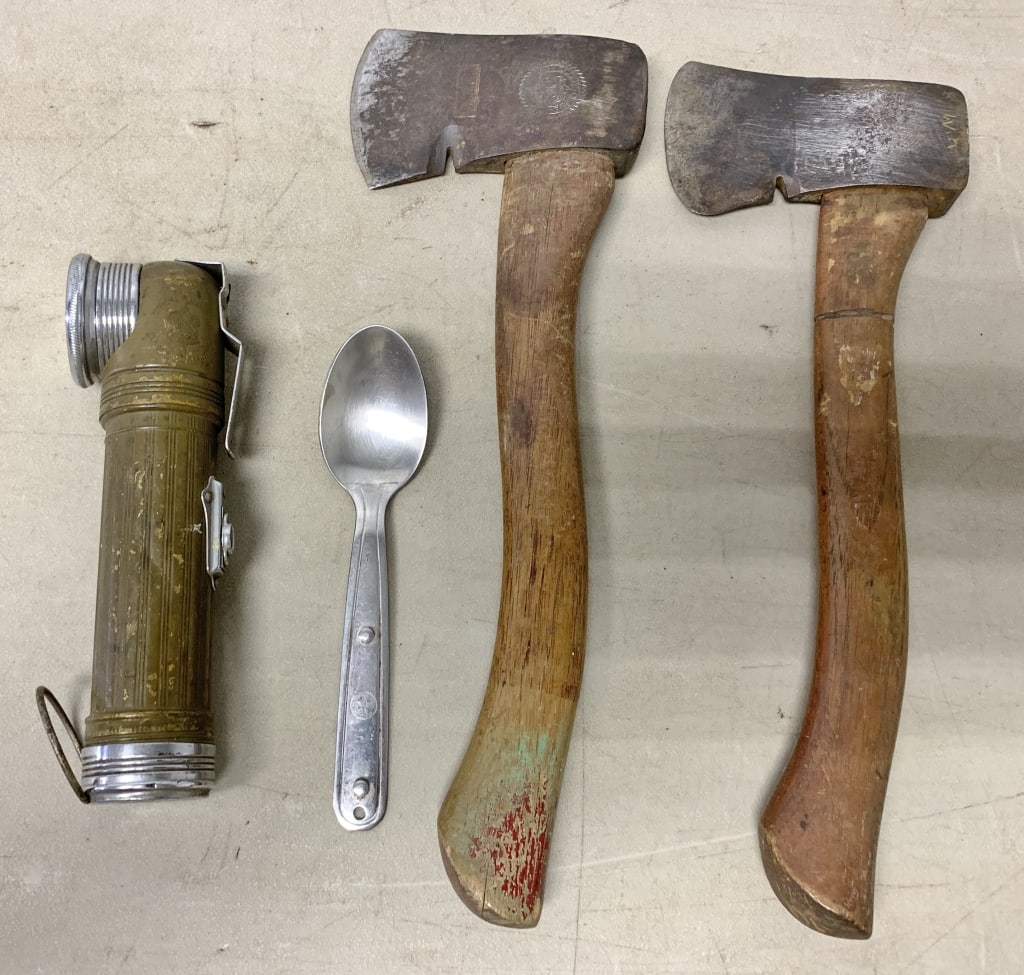 Boy Scout hatchets, flashlight and spoon