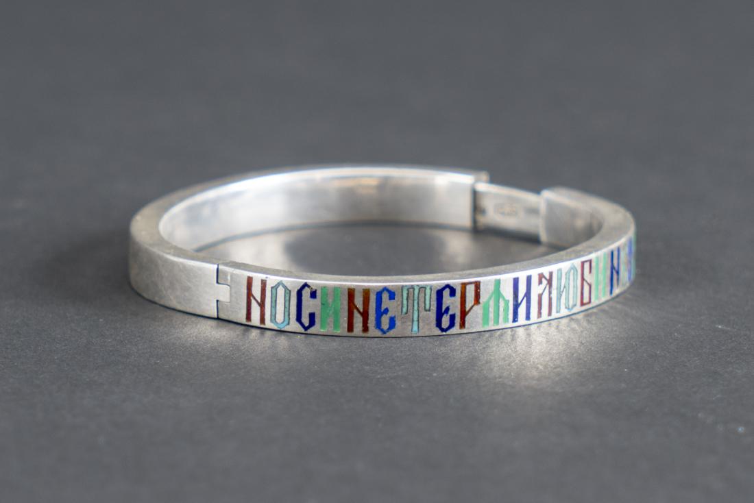 BRACELET en argent et émail polychrome. D. : 6 cm.