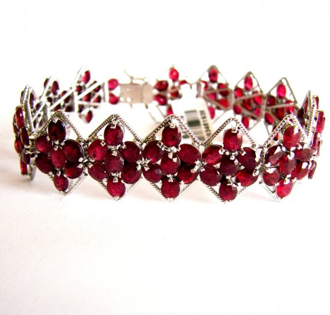 14k White Gold 43.10ct Ruby 1.65ct Diamond Bracelet