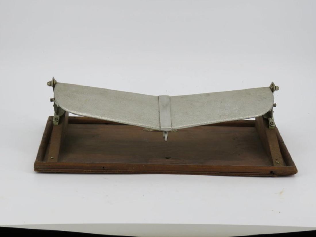 SoldMexican, Salesman's sample deskMexican Salesman's sample desk c. 1950painted steel, leather 3 h x 6 w x 3.25 d in (8 x 15 x 8 cm) Impressed manufacturer mark to desk top 'Steele Marca Registrada Hecho en Mexico'.See Sold Price
