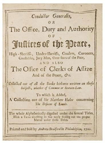 BRADFORD, Andrew (printer). Conductor Generalis, o