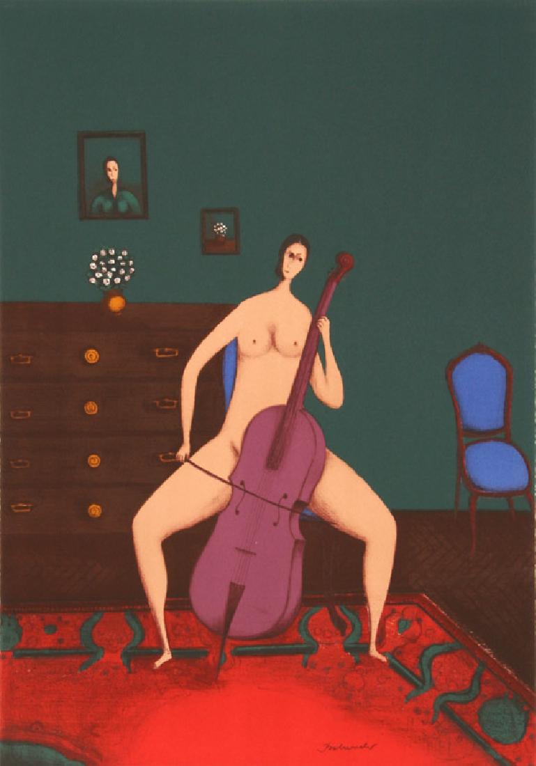 Branko Bahunek, The Cellist, Lithograph