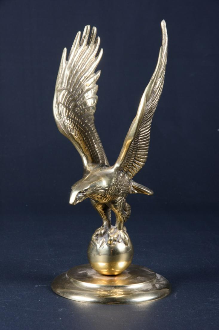 SoldBrass American Bald Eagle FigureEagle perched atop brass sphere. Measures approximately 11-1/2" high.All sales are subject to Bremo Auctions Terms & Conditions. Please review before bidding.See Sold Price