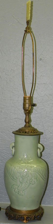 Brass & celadon vase made into lamp.