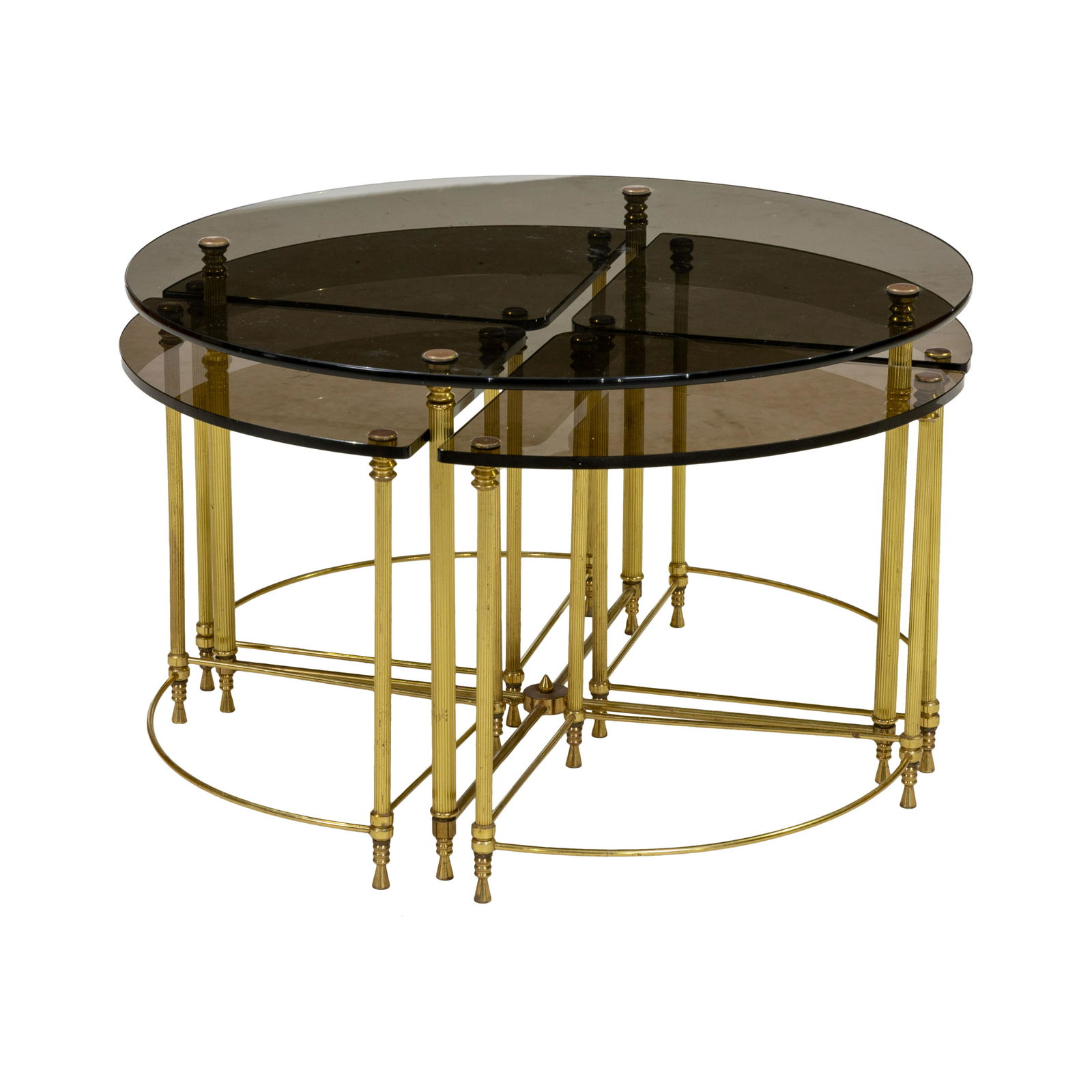 NEST OF THREE FRENCH BRASS AND GLASS FAUX BAMBOO STYLE TABLES IN THE MANNER OF JANSEN C 1960.Kamelot Auctions4.4(346)$5002 days Left