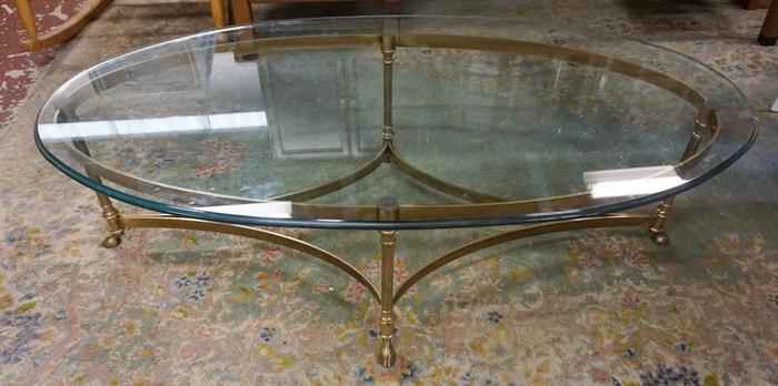 BRASS AND GLASS OVAL COFFEE TABLE